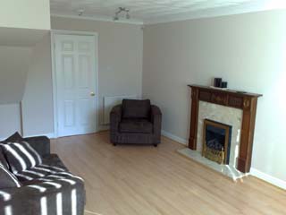 Open fire place with a adam style surround and hearth fitted with coal effect gas fire*. Two radiators. TV point*. give access to the kitchen area. Open rural views. Ceiling cornice. Two centre lights.